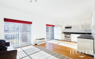 Sunny One bedroom apartment in Chic Condo with Keyed elevator access to apartment.Open floor plan with lots of natural sunlight from two balconies with Huge windows.Spacious open, airy living room.Bedroom can easily fit a Queen Sized bed.Updated Bathroom with high end finishes and soaker tub!True Closet Space with lighting.Open kitchen with Island and Recessed Lighting. Dishwasher and Microwave Included.Laundry located in bldg.Common Area Roof Top DeckVirtual Doorman Building.One block away from the express 3 train. A few blocks away from the A,B,C,D local and express trains. Located on the same block as New York's Second biggest Precinct. HarlemProperties1016