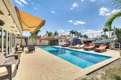 Beautifully updated waterfront residence featuring a spacious den and two additional bedrooms, offering flexible living options for work, guests, or family. Located on a quiet canal with direct ocean access, this home includes a modern pool, all-new stainless-steel appliances, impact windows, and excellent energy efficiency. Bright open layout with serene water views throughout, perfect for boating, relaxation, and upscale coastal living. One fixed bridge to ocean access. Boat lift and jet ski lift available.