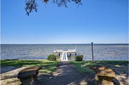 The kitchen is a culinary dream, featuring sleek stainless steel appliances, a charming butcher block island, and all the essentials to whip up gourmet meals or casual snacks. The living area opens up to a delightful outdoor space where you can unwind with a book, sip your morning coffee, or take in the tranquil waterfront views.