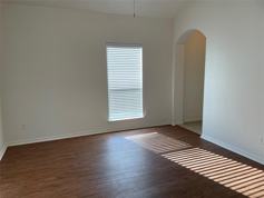 Newer single story duplex in community with schools, walking trails and pond. Ceramic in all wet areas. and plank in the rest with no carpet. 2 inch blinds and some ceiling fans. Kitchen has nice black stove and microwave with tiled counters. Utility room with extra space for frig. Newer paint. Fenced yard with wrought iron fencing and greenbelt in back. Sprinklers. No inside smoking, Income needs to be 3x monthly rent, good rental and no bad in last 5 years. Apply on line. Renters insurance required.
