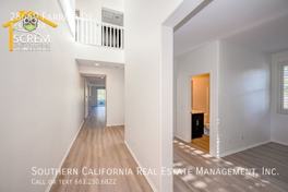 Stunning three-bedroom home with a bonus room and a loft located in the desirable gated community of West Hills. The entryway opens to a versatile bonus room that can function as a formal living room, dining area, or home office and includes a full bathroom and new luxury vinyl plank flooring. The spacious kitchen boasts granite countertops, dark cabinetry with brushed silver hardware, an oversized center island, a walk-in pantry, and stainless steel appliances, including a gas stove, double oven, dishwasher and refrigerator (not pictured). The kitchen seamlessly flows into the dining area and living room, which are highlighted by new vinyl plank flooring, recessed lighting, a ceiling fan, a cozy fireplace, and a sliding glass door that leads to a beautifully designed backyard. The yard features wraparound pavers, new grass, and no neighbors behind, ensuring ultimate privacy. The primary suite is conveniently located on the ground floor with new vinyl plank flooring, a ceiling fan, and a sliding glass door opening to the backyard. The attached bathroom features dual sinks, a walk-in shower, a garden tub, and a large walk-in closet. Also on the ground floor are a convenient half bathroom and a laundry room equipped with a sink and full-size washer and dryer. Upstairs, you'll find a spacious loft with high ceilings, recessed lighting, and new carpet flooring. Two guest bedrooms offer walk-in closets, ceiling fans, and new carpet, along with a full guest bathroom that features dual sinks. Additional highlights of this home include a two-car garage with epoxy flooring and a bright, open layout throughout. This beautifully maintained property combines comfort, functionality, and privacy, making it perfect for relaxing or entertaining. Enjoy the multiple HOA pools and spas. Conveniently close to schools, shopping, restaurants, and the 5 freeway.*Owner may consider a small pet.