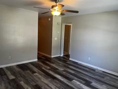 There are hardwood (LVP) floors in the main living spaces. Both washer and dryer are provided.