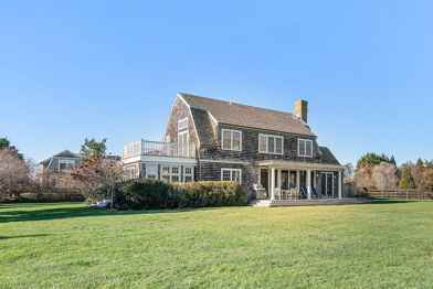 Down a flag drive is a magical spot bordering a farm. The property offers sweeping views and sounds of the ocean waves. You are greeted by a stand of hydrangea and flowering trees. This 3 bedroom 3 and 1/2 bath home was designed by a Southampton architect. The open floor plan offers lots of light and French Doors to let the outside inside. The first floor has a living room with an especially tall fireplace and dining area. There is a state of the art kitchen open to a sunroom for dining and relaxing. A pantry, laundry room and half bath are off of the kitchen. There is a library that could work for additional sleeping with a full bathroom. Second floor has master bedroom bathroom suite with a deck that provides magnificent views, two additional bedrooms and hall bathroom, and a loft/office area. There are ceiling fans, an outdoor shower, and large deck for summer entertaining. It is easy to bike to Sagg Main Beach or Gibson Beach and to fish off of the bridge on Bridge Lane. You could also kayak to the beach from the bridge on Bridge Lane where kayaks are available for rent. Very special home with architectural integrity. A 16' x 54' heated Gunite pool is off to the side and child safe. Owner just refinished all floors and has a no pet polic..Listing ID;754727