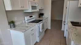 For Lease! Beautifully updated 2-bedroom, 1-bath home on desirable John Anderson Drive in Ormond by the Sea, just half a mile from the beach and Publix Shopping Center! This charming residence features tile flooring throughout for easy maintenance, and a brand-new galley kitchen with white cabinets, quartz countertops, and white appliances—including a glass-top range, over-the-range microwave, dishwasher, and refrigerator with bottom freezer. The open living space allows for flexible furniture layout, and a sunlit rear bonus room offers additional space for dining, a home office, or lounge.