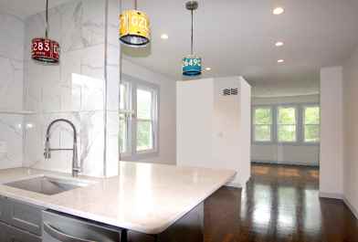 2BR/1BA remodeled ground floor apartment on a fenced off double lot. This 105 year old house just was rebooted to a new life with some stunning modern upgrades top to bottom. Beautifully restored historic hardwood floors will captivate your attention from the front door throughout the entire apartment. Italian designers grade tile will greet you in bathroom. Bright and sunny with endless countertop surfaces this kitchen will help you explore your inner chef's magic. Completed with washer/dryer and stainless steel appliances from now on your life will be a breeze. Central air inside and green spaces with trees surrounding the house outside are complementing to the sense of tranquility.
