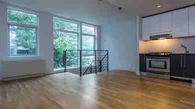 Beautiful condo style apartment with tons of light, closets and more! The kitchen is amazing with a huge wrap around counter and bar facing the living room. Perfect for entertaining. One room is monstrous with it's own bathroom and the other 2 rooms are a bit smaller but still a very good size. And the building has more amenities than you can shake a stick at. Including very hard to find things like, practice space, a recording studio, and a wood shop!