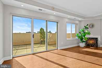Penthouse, Unique, Strikingly Elegant, one-of-a-kind exceptional floorplan: 1 BR+ DEN/1FB+ Powder Room is designed to appeal to any discerning bon vivant. A 400 Sq. F. Wrap Around Terrace w/ Savor Breathtaking/Unobstructed Views w/ two wide floor-to-ceiling sliding window doors is appointed to fit 2 sets of outdoor furniture and ideal for entertaining a large circle of friends. Seamlessly recessed into ceiling adjustable to your needs & desires, LED light fixtures throughout w/ trendy outlets & 'ELK' handmade pendants. Custom made roller shades throughout. Brand New, High-End, Stunning, Spa like Bathroom w/ 'Adessi' porcelain tiles and Impeccable Illumination is ready to wash away the stresses of the day. Enjoy LED Wall -Mounted Medicine Storage Cabinet bathroom. You will appreciate Space maximizing custom made closets by 'Closets by Design' throughout the condo that create efficiency and a sense of empowerment. Enjoy SS 'Kenmore' Kitchen appliances ('Fisher Paykel' Fridge), 'Samsung' Washer/Dryer w/ custom made barn door. Brand New Plush Medium Grade Carpet in the Primary BR+Den. The unit is in mint condition, freshly painted to light grey 'Crushed Ice' including 'Ultra White' ceilings. Enjoy New 'Kohler' toilets along w/ 5'5 baseboards. Rent includes: Water/Gas/Sewer/Trash/Parking, FP & Heating/AC system seasonal inspections/filter replacement & reduced price in unit service. This luxury condominium w/ 24/7 concierge is perfectly located in the heart of Alexandria w/ direct access to I-395 and 4 miles away from Amazon's National Landing HQ2, a prime living location! NHP has a fabulous exercise room with sauna & locker room, heated community pool, picnic area w/ firepits and grilles, business center, community room, lounge area, management. *Super locale bordering Arlington & Falls Church*Close to many restaurants, shopping, etc. Enjoy Express & Daily Metro bus & DASH bus service to King Street Metro and easy access to major transportation routes for convenient commuting! The Gateway Alexandria anchored by a Harris Teeter grocery store is open & ready to serve (in walking distance!). A pet friendly community. Condominium accepts 1 dog any weight, or two pets max weight 35 lbs. each at maturity. Great place to call it "HOME'. Owner is a RE licensee