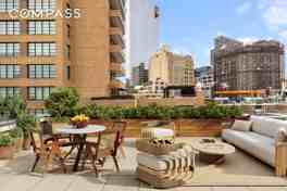 A true full-floor penthouse on one of SoHo s most coveted, quietly residential blocks. Direct elevator entry, north and south exposures, and expansive private outdoor space define a home that feels both elevated and discreet. The elevator opens directly into the residence, revealing a floor-through layout filled with natural light throughout the day. The living and dining spaces are open and generously scaled, flowing naturally onto a large private terrace that feels rare, calm, and distinctly downtown. The kitchen is clean and functional, designed for real use, with ample cabinetry, an oversized pantry, integrated appliances, and a dishwasher. A washer and dryer are discreetly tucked within the apartment. Three well-proportioned bedrooms are thoughtfully separated, each with its own bathroom, offering privacy without sacrificing flow. Storage is abundant, reinforcing the ease and livability of the space. A legitimate penthouse offering, private, light-filled, and anchored by outdoor space, positioned at the center of SoHo with Nolita and the West Village just beyond the door.