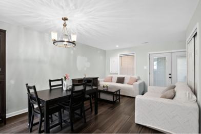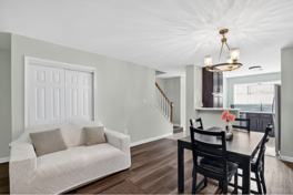 The main level features a spacious living and dining area, while the updated kitchen provides ample cabinet and counter space. Bedrooms are well-sized, and the home includes in-unit laundry and generous storage.