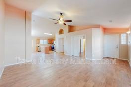 This inviting home in Ventana Ranch offers an open living and dining area that connects to a well‑equipped kitchen with all major appliances. The layout includes three guest bedrooms, a guest bath, and a private primary suite featuring a walk‑in closet and an en‑suite bathroom with a garden tub and separate shower. A bright sunroom adds extra living space, and the home also provides laundry hook-ups and a two‑car garage. The backyard is fully fenced and includes a covered patio, perfect for enjoying the outdoors in this quiet Northwest Albuquerque neighborhood.