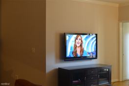 It's about 1074 sqft & available now. The rent is $1900 excluding utilities. Water is free. Gas & electric average ~$40. Washer, dryer, dishwasher, microwave, 2 parking spaces (1 reserved space, 1 visitor decal) are included with the unit. Both rooms are just about 11'x14' & each have a full bathroom with shower, big bathtub, & walk-in closet. The only 'furnished' aspect is the 50" TV mounted on the living room wall.