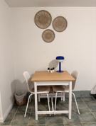 * Living area suitable sized for a double bed, a small TV mounted on the wall (not provided) and a high-top table or desk