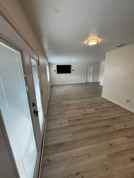 upgraded open kitchen, with appliances, laminate wood flooring throughout.