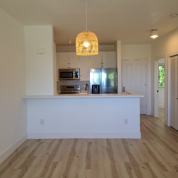 Rent this immaculate, newly renovated 2nd floor unit at Ho'olea Terrace. Luxury vinyl plank flooring throughout, smart appliances, tiled kitchen counters, closet systems and cabinets, LED light fixtures and Minka air fans. Enjoy beautiful ocean views, w/d in unit, 2 assigned parking spaces. Water and trash are included.