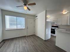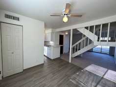 The home features a newly renovated kitchen with modern finishes and ample cabinetry, providing both style and functionality. A washer and dryer are conveniently included within the unit. The open living area extends to a small private patio, ideal for outdoor relaxation or entertaining.