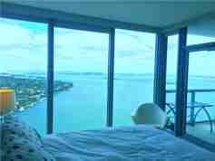 The apartment you've been looking for! Completely remodeled & upgraded throughout w/ spectacular bay views from every room. Floor-to-ceiling windows w/ treatments, beautiful marble floors, modern open kitchen w/ granite counters, s/s appliances & travertine finish, custom wood doors, luxurious master suite w/ built out walk-in closet, glass shower & dual sinks + half bath for guests, W/D & storage unit. Incredible amenities: 2 pools, state-of-the-art gym, bbq, movie theater, conv store, front desk & valet