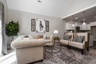 The delightful Newport offers quaint charm starting with the lovely front porch. Upon opening the front door, you are drawn to the open great room, gourmet kitchen with oversized eat at bar and charming dining area. The living room boasts a vaulted ceiling that opens to rear patio. The master suite is large with attached bath and oversized closet.