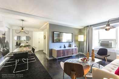 944 square feet, Pets are allowed. Amazing 2 flex 3 modern line apt at Stuy Town. 10'4"x12" den is convertible to nice sized 3rd bedroom. The recently-renovated apartment homes offer expansive living spaces. From the many social events, seasonal greenmarket & ice rink, live music and movies, there is always something going at Stuytown. FREE 48" flat screen TV for all 5/31 and sooner move ins! *pictures are of similar units in building, Please see floorplan We can help you find roommates.