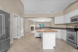 This pet-friendly 3-bedroom, 2-bath home offers an impressive 2,222 square feet of comfortable living and is available now! You'll love the oversized kitchen featuring a butcher-block island, built-in desk, stainless KitchenAid appliances, and abundant cabinet and counter space-perfect for cooking, entertaining, or everyday living. The home also boasts spacious bedrooms, a large living room, a dedicated office, and a separate laundry room with washer and dryer (non warranted). Step outside to enjoy the massive privacy-fenced backyard, ideal for pets, play, or relaxing outdoors. Conveniently located just minutes from I-10, shopping, dining, schools, and more-this home truly checks all the boxes!