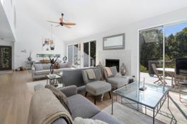 RR#: 24-529 Perched atop scenic Quadrant Hill, this 3-bedroom, 3-bathroom home offers sweeping western views of hundreds of acres of protected parkland. Designed in a classic saltbox style, the home features an open floor plan ideal for entertaining, with abundant southern light and soaring double-height ceilings. The spacious living and dining areas are framed by sliding glass doors that open onto a generous wraparound deck-perfect for indoor-outdoor living. The main level also includes a fully equipped kitchen, an en-suite guest bedroom, and a private side entrance through the laundry room. Upstairs, you'll find two additional bedrooms and two full bathrooms. The expansive primary suite boasts double-height ceilings, a walk-in closet, and a luxurious bathroom with both a tub and shower. Step out onto the large rooftop deck from the master suite to take in breathtaking views of the sunset, the surrounding parkland, and the open bay beyond. Out back, the private yard features ample decking and a 20x40 saltwater pool with a dedicated lounge area-ideal for relaxing or entertaining. Located in the tranquil and highly sought-after Landfall Bayfront community, this home is a must-see for those seeking privacy, quiet, and natural beauty. Listing ID: 926220