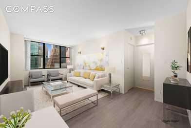 *Available June 15 - High floor one bedroom in a full-service luxury condominium. Bask in abundant sunlight and sweeping open views in this wonderful south-facing one-bedroom. Apartment 19D is a true standout, welcoming you with a spacious and inviting living room that offers ample room for both comfortable lounging and a full dining setup, ideal for everyday living and entertaining alike. The kitchen is thoughtfully designed with rich walnut-toned cabinetry, generous counter space, and stainless steel appliances, including a dishwasher, making both cooking and hosting effortless. The oversized bedroom easily accommodates a king-sized bed along with additional furniture, offering flexibility for a home office or extra storage. Completing the home is a well-maintained bathroom and impressive closet space throughout, providing both functionality and ease of living. The Delegate is a full-service luxury condominium offering a 24-hour Doorman, roof deck with full river and city views, laundry room, bike room, and storage in the basement. Easy access to The United Nations, Grand Central Station, and the 4/5/6/7/S subway lines.