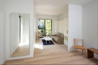 No Fee. Sleek and spacious studio apartment with 8 ft tall sliding windows. Free with the rent includes an all-inclusive package of free Wi-Fi; cable; Television, weekly housekeeping service including hotel style linen and towel change service, as well as bath amenity stocking and re-stocking from high-end apothecary brand Malin & Goetz. Additionally tenants have access to members-only social events and venues across the city. NYU Dental Student? NYU Nursing Student? Bellevue Employee? NYU Langone Employee? Our building is steps away from your school/office/place of work. See why so many of your colleagues choose to live in our building!!