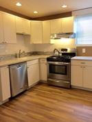 Gorgeous Sunny apartment in a quiet neighborhood w/NEW eat-in KITCHEN, Corian Counters, elegant back-splash, stainless steal appliances, gas range with vent hood, additional counter space for entertaining and recessed lights. New Bathroom, Central Air, Dinning room off kitchen and living room off the dining room that can also be used as a bedroom w/ a built-In closet. First floor master bedroom with doors leading to a deck and lovely large yard. Picture yourself sitting on the deck in the morning sipping on a cup of coffee or the evening entertaining your family and friends. Or you can relax on the front porch in the Adirondack chair after a hard day at work. Do you want a private home office with its own entrance? Well,this place is for you! 3rd bedroom in finished basement and an additional room that can be used as your office or family room & it has its own entrance.Parking for one car & plenty of street parking. W&D in unit.New windows, MB, kit & basement. LARGE YARD Close to Town