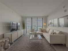 This gorgeous split two-bedroom two bathrooms + den, totally furnished by the design team at Interiors by Steven G can't be missed! North facing incredible living room with a wall of floor-to-ceiling impact windows and a great and large balcony to enjoy. The master bedroom has an amazing bathroom with two convenient walking closet. An impressive modern kitchen with tons of counter space and plenty of storage. A warm and pleasant second bedroom fe...