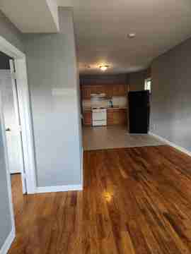 Spacious 3-bedroom, 1-bath apartment with an open-concept living room and kitchen. Street parking available and access to the backyard for relaxing or entertaining.