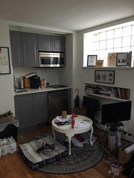 Completely renovated, cute studio apartment, kitchenette with stainless steel appliances & granite counter, bathroom completed with marble floor and subway tiled shower, 2 good size closets, quiet street in fantastic location.