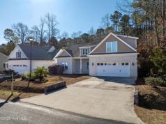 Beautifully updated custom brick home in the desirable North Shore Country Club! This home features fresh new paint throughout and brand-new carpet in all bedrooms and the FROG, creating a bright, move-in-ready feel. The standout kitchen offers granite eat-at countertops, shaker-style cabinetry, recessed lighting, a pantry, and stainless steel appliances, including a side-by-side French door refrigerator. Engineered hardwood floors flow through the living, dining, and kitchen areas, anchored by a 42'' corner gas-log fireplace with marble surround. Enjoy 10' smooth ceilings and 8' interior and exterior doors throughout the first floor, adding to the home's open and upscale feel. The spacious primary suite features a tray ceiling with double crown molding, recessed lighting, and a wall of windows overlooking the wooded lot. The spa-inspired bath includes dual granite vanities, a soaking tub, walk-in closet, and an oversized custom-tiled shower with rain shower head and body sprays. A 336 SF FROG offers new carpet, 9' ceilings, and separate temperature control-perfect for a home office, guest space, or bonus room. Additional highlights include a split bedroom floorplan and a large deck with built-in seating and storage. Minutes from North Topsail Beach and Camp Lejeune-this one checks all the boxes. Schedule your showing today!