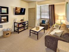 Fully furnished apartment. The community center has a 24 hour gym, a pool, hot tub, indoor basketball court, movie theater room, a pool table, ping pong table, tanning bed, free coffee and hot chocolate everyday, mac computers and pc computers to print from which is free.