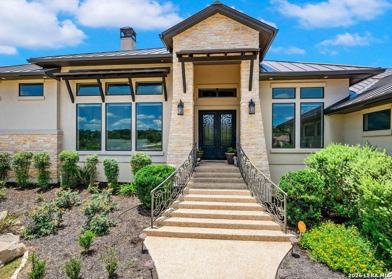 Exquisitely designed custom home nestled in the scenic beauty of the Texas Hill Country, located in the exclusive community of Canyons at Scenic Loop. This exceptional residence showcases superior craftsmanship and high-end finishes, paired with a contemporary open-concept floor plan. Soaring ceilings and expansive walls of windows fill the interiors with natural light, accentuating custom ceiling details, designer lighting, and elegant tile and hardwood flooring. The gourmet kitchen is a true centerpiece, featuring premium stainless steel appliances, gas cooking, and an oversized island with bar seating-perfect for both everyday living and entertaining. The spacious primary suite serves as a private sanctuary, offering a spa-inspired bathroom and an impressive walk-in closet. Three well-appointed guest bedrooms are complemented by a generous game room with convenient outdoor access. Outdoor living is equally impressive, designed for seamless entertaining with a covered patio, built-in gas grill, and a resort-style pool and spa, creating a private retreat ideal for relaxation and gatherings.