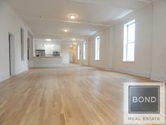 This apartment is a sprawling, live/work loft with high ceilings, and an open layout. Tall, framed windows, high ceilings, hardwood floors and a renovated kitchen.
