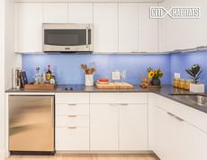 Studio featuring eight foot windows with Juliet balconies and nearly ten foot ceilings. Clean, modern lines maximize efficiency and make no compromises in functionality. Tasteful finishes are complimented by custom Italian cabinetry, stainless steel appliances and chrome Hansgrohe fixtures. A full package of services is provided by Ollie, including cable, wireless internet, housekeeping, in-home management by Hello Alfred, and community experiences.