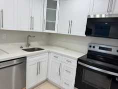 Wonderful water views from this 1 bedroom apartment with almost 1000 sqft. Just remodeled unit. Very bright. Laminate floors throughout. New kitchen cabinets with quarzo counter tops and new stainless steel appliances Closet galore. Bay front building. Completely remodeled lobby. Amenities include: heated pool facing the water, renovated gym. Assigned parking space. Centrally located in North Bay Village, close to the beaches and I 95. Sorry no pets.