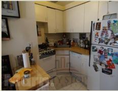 Large, bright studio; quiet building; convenient basement laundry center. Live-in super.Generously-proportioned living area with exposed brick wall; hardwood floor.Separate, windowed kitchen features wood cabinetry; Formica counter top; full-size refrigerator; and dishwasher. mdrn16769