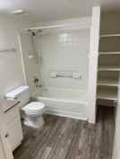 -Linen shelving in primary bathroom