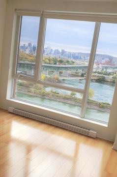 Large 2 bedrooms condo for rent with an amazing view of Montreal downtown, Saint Laurence river, Olympic stadium and Champlain bridge. Right in front of Longueuil metro station, 15 min to downtown by metro or car.