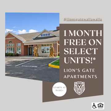 Discover relaxed sophistication at Lion's Gate Apartment Homes-where comfort meets convenience in Walla Walla's Eastgate neighborhood. Surrounded by local favorites like Eastgate Lion's Park, the Mill Creek Trail, Walla Walla Community College, and Safeway, our location puts you right where you want to be. Enjoy stylish, modern apartments with thoughtful amenities, a welcoming pet-friendly atmosphere, and effortless access to Highway 12. Come home to a community that feels both well connected and refined.