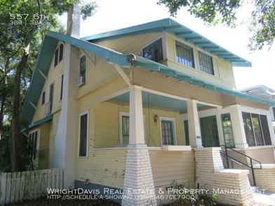 Historic 3 bedroom /2.5 bath home filled with charm and character! This home provides over 2,000 sqft of living space and offers a screened in patio and open-covered porch. Main floor has beautiful reconditioned hardwood flooring, impressive cove & beam ceiling, fireplace in the generous L-shaped living/dining room, den/office, inside utility room with w/d and convenient half bath for guests. The kitchen is perfect for entertaining with cabinets along the walls, island for extra storage, ample amounts of counter space and features an appliance package including fridge, built in oven and dishwasher! The spacious 3 bedrooms & 2 full baths are located on the second floor. Mater bedroom is roomy and features an en-suite with single vanity and stand in shower! This home is located on a fenced corner lot with mature shade trees just two blocks from Round Lake and just minutes from Downtown St Pete! Tenant pays a flat rate of $110 for utilities, this does not include electric. You dont want to miss the opportunity to make this stunning home yours today!$350 1 Pet fee or for 2 pets $500 Pet Fee, pets accepted at owners discretion. No Aggressive Breeds. (CASE BY CASE ONLY)