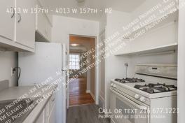 windows allow natural lighting. The kitchen is complete with new flooring and fridge and gas stove. Open living area with built in