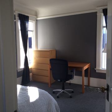 A single furnished bedroom with two windows and closet in beautiful, quiet house (3BR/1BA) in inner Richmond District Available.