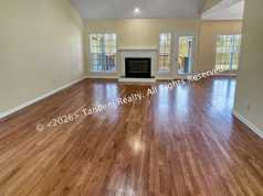The front entryway leads down a short hallway to a sizeable family room, complete with fireplace.