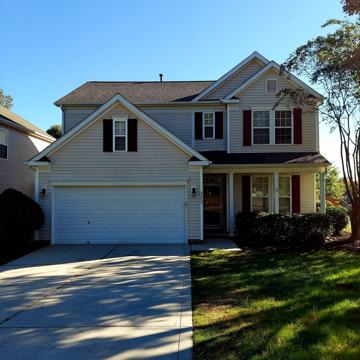 3 Bedroom, 2.5 Bath single family home in desirable Highland Creek - Cabarrus County side. On a corner lot! Home features an open two-story family room with fireplace. Brand-new carpet and fresh paint throughout! Kitchen with appliances, lots of cabinet and counter space. Tile floors. Spacious primary bedroom with vaulted ceiling. Dual vanities, garden tub and separate shower in primary bath. Secondary bedrooms with ample closet space. Ceiling fans, window blinds. Front porch, large, pet friendly fenced backyard & patio.
