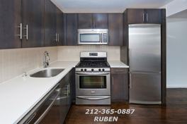Kitchen with stainless steel appliances, lots of cabinets, dark finish granite counter tops, a gas range, a gas oven, full size fridge, dishwasher, microwave.