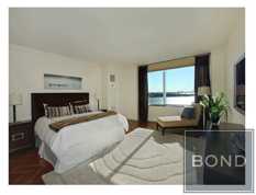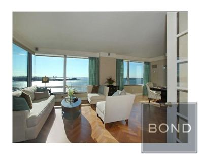 Apartment has huge living/dining room with tall windows overlooking the view. The large kitchen, with custom lighting and elegant finishes, looks out a wide pass-thru into the living area, and flows into the den, which would serve well as a formal dining room if you prefer. Cherry wood cabinetry by Poggen Pohl and granite countertops create a warm atmosphere, the Sub Zero refrigerator, Viking range, and a Miele stainless dishwasher. The floors in every room are a lustrous cherry hardwood, in a herringbone pattern, and the layout separates the master suite from the other chambers to create maximum privacy and comfort. Short stroll from all of Battery Park's great shopping, dining and entertainment.