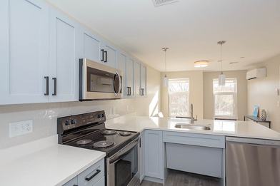 All units have washer/dryer in unit, stainless steel appliances, quartz counter tops, energy efficient wall unit A/C and Heat. Large windows, open concept kitchen living area, tile bathroom.