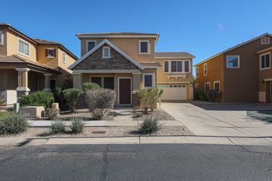 Welcome to this beautiful two-story home featuring three spacious bedrooms and two and a half bathrooms in a desirable neighborhood. Step inside to an inviting open floor plan with tile flooring throughout the main living areas, while the carpeted staircase leads to the upstairs bedrooms with vinyl flooring for added comfort. The kitchen boasts rich brown cabinetry, sleek stainless steel appliances, and elegant stone countertops, perfect for meal prep and entertaining. Enjoy the convenience of a two-car garage and a driveway for additional parking. Relax on the charming front porch or entertain in the fenced backyard with a covered patio, offering a private outdoor retreat.