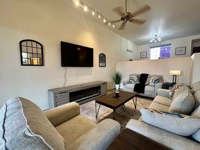 Experience unmatched elegance in this ground-level one-bedroom, one-bath condominium, situated within an esteemed Zocalo luxury condo community in Santa Fe. This sophisticated residence presents an ideal fusion of contemporary style, comfort, and stunning views, offering an extraordinary living experience. Key Features: - Private One-Car Garage: Benefit from the convenience and safety of your own exclusive garage. - One Outdoor Patio: Savor the breathtaking panoramas of both the urban skyline and impressive mountains from your choice of two outdoor spaces. - Upscale Amenities: Pamper yourself in the resort-style pool, relax in the spa, and maintain your fitness routine with access to two cutting-edge gyms and locker facilities. - Community Lounge: Ideal for social events or unwinding. - Dedicated Hiking Paths: Discover the natural wonders of Santa Fe with privileged access to picturesque trails. Prime Location: Located just a stone's throw from downtown Santa Fe, this condo offers seamless access to the lively cultural landscape, exquisite dining, and quaint boutiques. Immerse yourself in the area's rich heritage and artistic spirit, all while enjoying the seclusion and serenity of your luxurious residence.